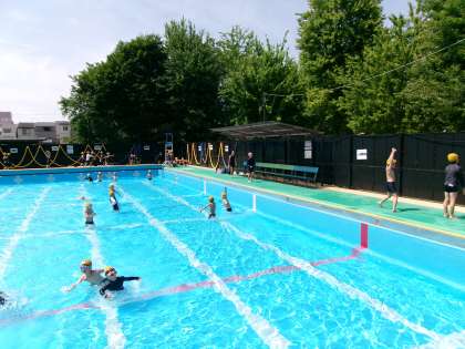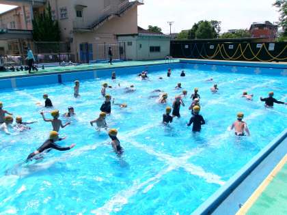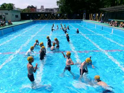 準備体操をしてから、水をかけ合ったり、じゃんけんをしたりして遊びました。
