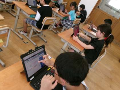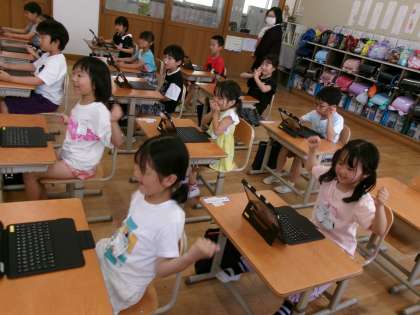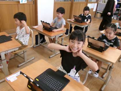 タブレットの使い方を学習しました。使うときの約束を聞いた後、実際に操作をしてみました。算数のミライシードにもチャレンジしました。正解すると、メダルが増えていくので、嬉しそうに問題を解いていました。