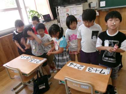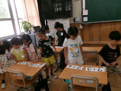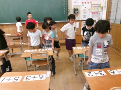 たし算の計算カード練習を頑張っている1年生。少しずつ計算が速くなってきました。チャレンジタイムでは、順番にけいさんカードを解いていきました。来週からは、計算カード検定を行っていく予定です。