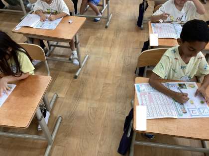 形や書き順に気を付けながら、「コ」「ツ」をドリルで学習しました。ひらがなと同様、ていねいに書こうと頑張っていました。