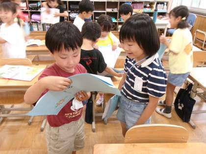 図書館の本を活用して、つぼみクイズを作ってきました。今日は、そのつぼみクイズを出し合いました。みかんや彼岸花などのつぼみなどは見たことがない子が多いので、つぼみクイズを通して、初めてのことをたくさん知ることができました。