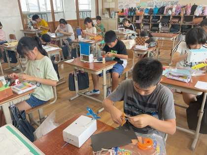 6年生の図画工作科「くるくるクランク」の学習の様子です。