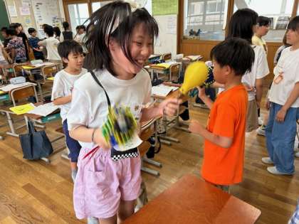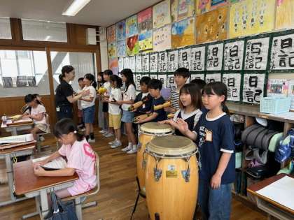 やってみたい楽器を選び、リズムをとって、楽しく演奏しました。