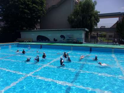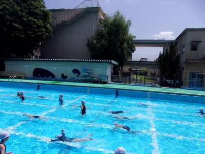 今日の水遊びでは、ビート板を使って「ラッコ浮き」や「けのび」をしました。