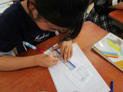 算数科「表とグラフ」の学習で、棒グラフの書き方を調べています。今日は少ない数は「その他」にまとめられることを知りました。