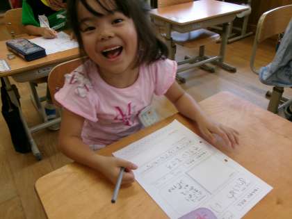 今の自分のすきなことや将来の夢などを書きました。「やさしい自分が好きだよ。」「大きくなったら、宇宙飛行士になりたいな。」など、楽しそうに書いていました。