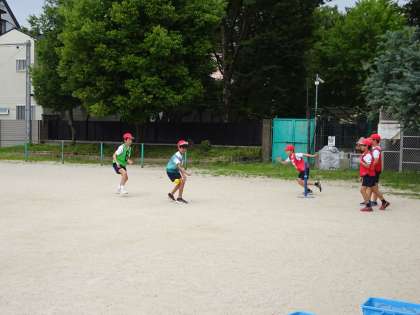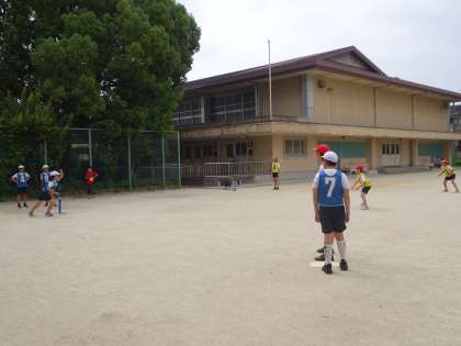 ベースボールでは、チームで協力しながら試合をしています。攻めるときは、相手のいないところをねらって打ったり、守るときはボールのとんでくるところを予測して動いたりしています。