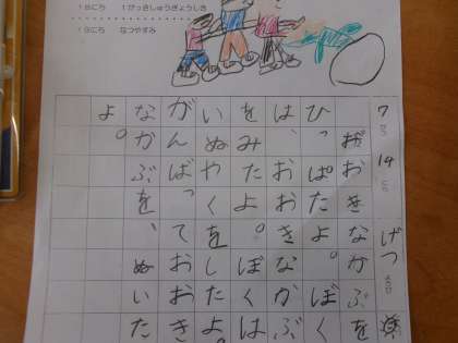 7月もあっという間に2週間が終わりました。7月の学習したことを思い出し、生活科のカードにまとめました。計算カード検定を頑張っていることや夏見つけをしたこと、国語科で音読劇をしたことなどを書いていました。