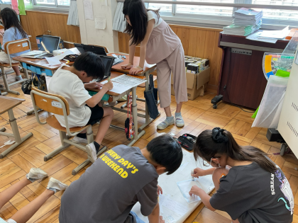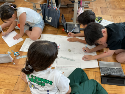 京都のことについて調べたり、外国のご飯について調べたりと各班一生懸命新聞を作っています。