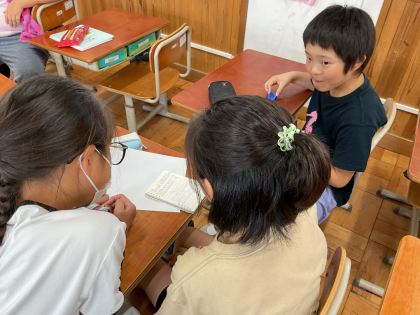 どのようにしたら誕生日の人が喜ぶか考えながら話し合っています。