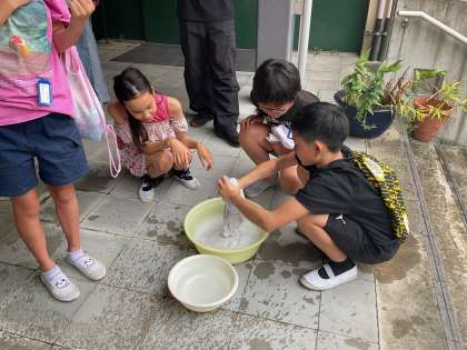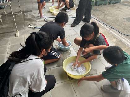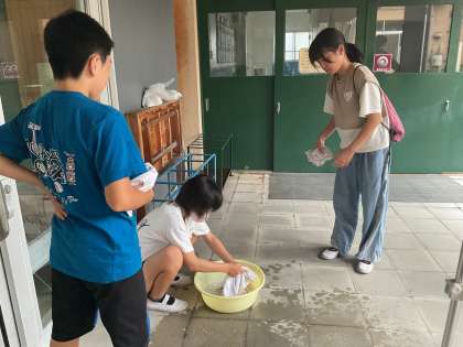 家庭科「夏をすずしくさわやかに」の学習で、洗濯の体験学習をしました。