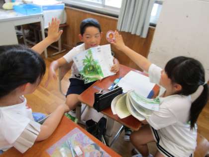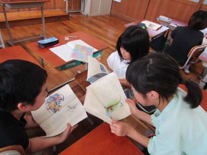 国語で「鳥になったきょうりゅうの話」を読んで、クイズを出し合いました。