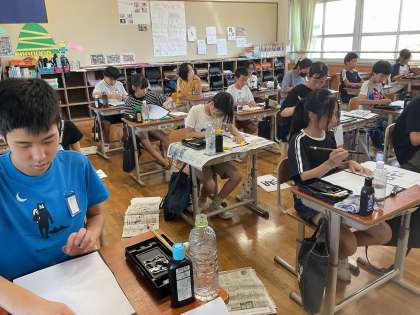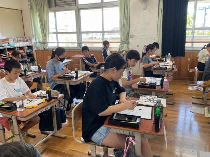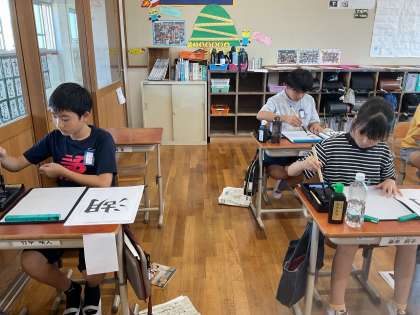 子どもたちは、手本をしっかりと見ながら心を落ち着けて丁寧に書きました。