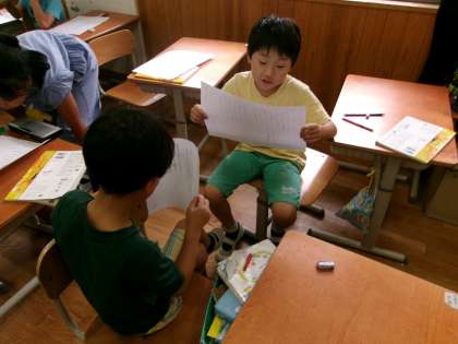 国語科の学習で「雨のうた」という詩をみんなで音読しました。