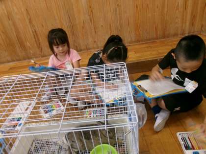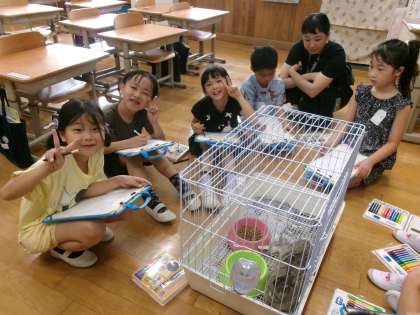 学校のウサギとなかよくなるために、どんな様子なのかを観察しました。体の色や顔の様子、エサの食べ方などをよく見ていました。見れば見るほどかわいい姿に、「触ってみたいな。」「どうやって抱っこをしたらいいのかな。」とお世話の仕方を知りたくなったようです。