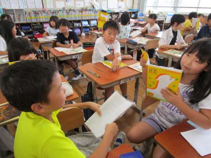 給食で飲んでいる牛乳はどのように作られているのかみんなで予想しました。