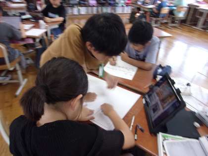 エコツアーに向けての準備が進んでいます。来週の本番に向けて、グループごとに発表練習をしていました。