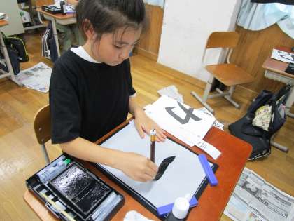 「おれ」や「はね」の筆使いに気を付けて『力』を書きました。