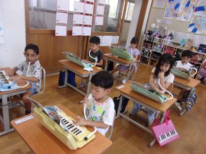 鍵盤ハーモニカの練習を進めています。