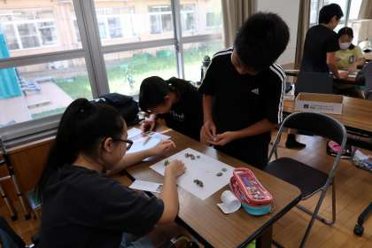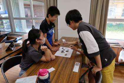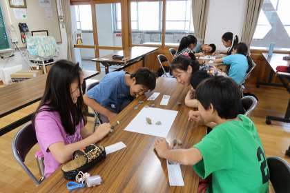 今日の授業では、室町時代につくられた石庭を、班ごとに再現してみました。