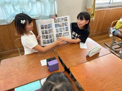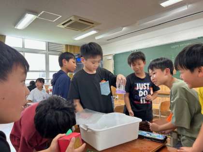 夏休みの自由研究作品をグループのお友達と発表し合いました。