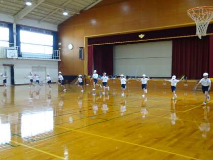 あかしやスポーツ大会に向けて学年練習をしました。短縄で前跳びや駆け足跳びなどを行いました。