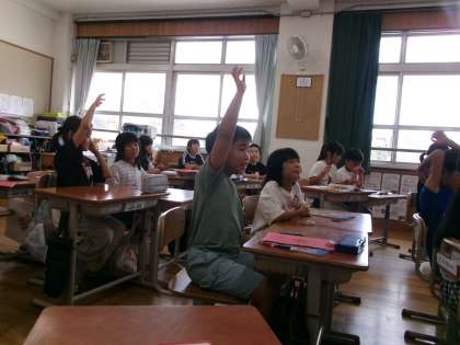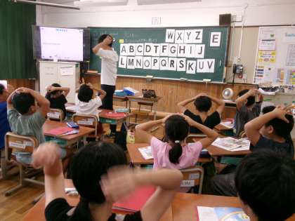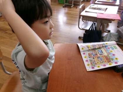 キーワードのアルファベットを決めて、そのキーワードが出てきたときに消しゴムをとります。勝ち進むと席の前に行けるルールに大興奮!