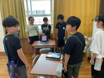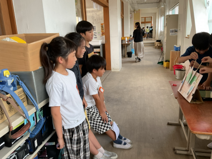 朱雀第四小学校の中にある様々な「エコ」についてお話を聞いて学びました。