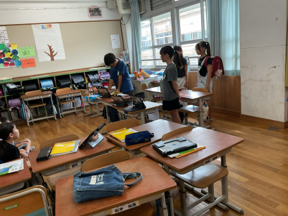 エコについて紙芝居やクイズを通して、お話を5年生がしてくれたので、4年生も楽しくお話が聞けました。