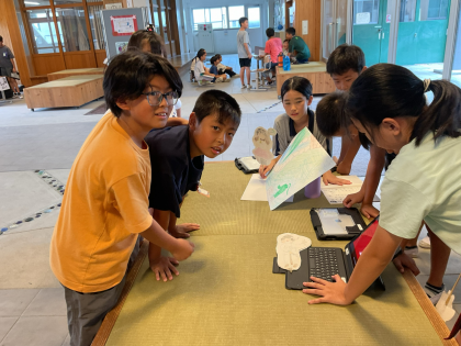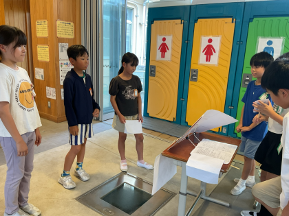 朱雀第四小学校の校舎内に様々なブースを5年生が開いてくれ、班でマップを見ながらお話を聞きにいきました。