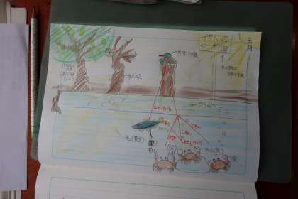 子どもたちは、カニたちの様子やかわせみなど、本文からわかることをしっかりと読みとって、絵に表しました。