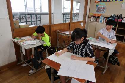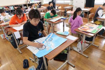 子どもたちは、お話からイメージをわかせて、丁寧に作品づくりを進めています。