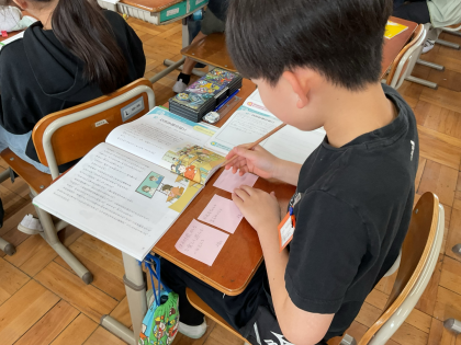 ピンクの付箋にクラスの良いところを書きました。