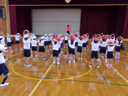 体育科の学習では、あかしやスポーツ大会に向けて、ダンスの練習をしています。