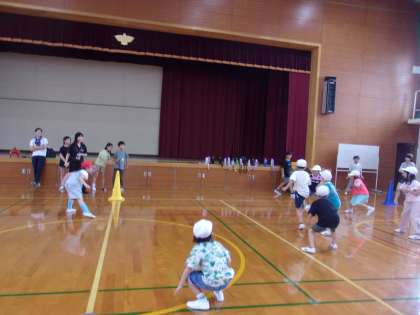 キャッキャと楽しそうに声をあげながら、ルールを守って楽しく遊んでいました。2年生とも、お互いの応援をし合って嬉しそうにしていました。