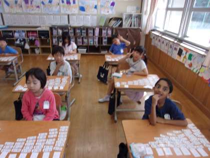 「答えが大きくなるほどどんどんカードが少なくなっているよ」「上から見ると9,8,7…と下がっているよ」など、色々なことに気づいていました。計算カード検定もどんどん速く正確に言えるようになってきています。