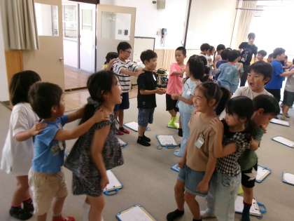 韓国・朝鮮のじゃんけんの仕方も教えていただきました。また、自己紹介の言い方も教わり、歌に合わせて楽しみました。とても楽しかったようで、今日の下校では、「アンニョンヒカセヨ」と、友達とさようならの挨拶をしていました。
