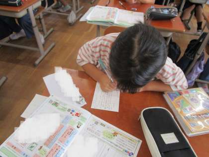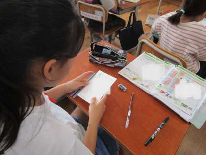 国語科の学習であかしやスポーツ大会の案内状をかきました。実際にはがきにかいて郵便で出します。