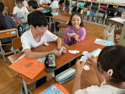 同じアルファベットがあれば、ペアでカードが捨てられる、ババ抜きのようなカードゲームをしました。