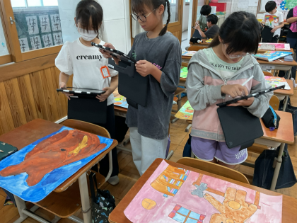タブレットを用いて、図工の鑑賞をしました。
