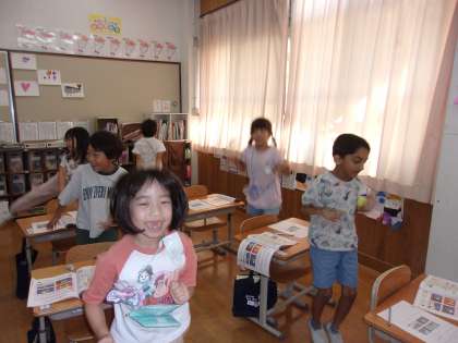みつばちハニーの様子や場面の様子を想像しながらききました。最後には、ハニーになりきって音楽に合わせて身体を動かしながらノリノリできいていました。