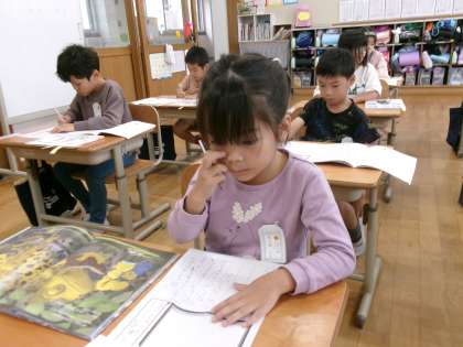 お気に入りの本の紹介カードを書きました。その本の大好きなところとその理由をカードもまとめました。明日、その紹介カードを使って、お気に里の本を友達に紹介します。
