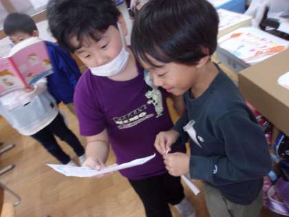 「友達と好きな場面が一緒だったよ」「好きなところは一緒だけど理由が違ったよ」と楽しそうに伝え合っていました。