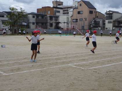 スポーツ大会に向けての練習が進んでいます。入場の時には、リズムに合わせて短縄を跳びます。徐々に慣れてきて、楽しんで取り組む姿が見られてきました。