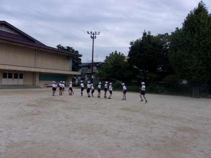 あかしやスポーツ大会が近づいています。団体競技では、みんなで声をかけながら大縄跳びに挑戦しています。休み時間にも練習をしたり作戦を立てたりしていました。