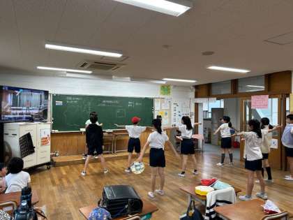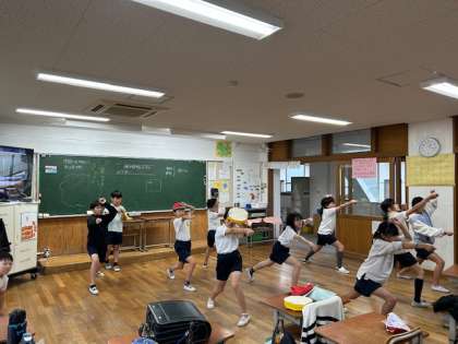 休み時間にもエイサーを踊る帰る場所の曲が流れると、知らぬ間にパーランクーを持って子どもたちが集まっています。
