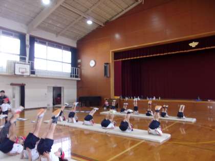 「両足でジャンプできたよ」「頭を付けずにできるよ」と嬉しそうに取り組んでいました。