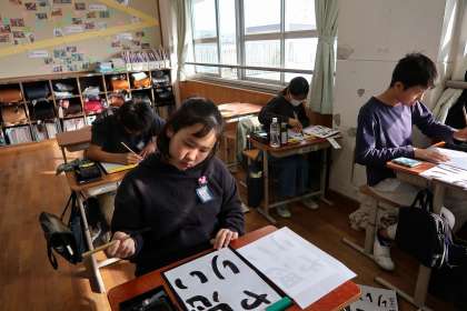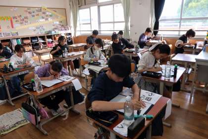 6年生の毛筆の学習「思いやり」の学習の様子です。