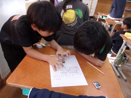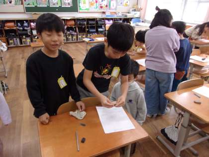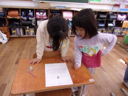 石を観察した後は、その石の「面白いところ」「好きなところ」をカードに書いて、みんなで交流しました。