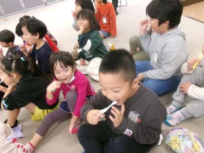 歯科衛生士の方から、正しい歯みがきの仕方を教えていただきました。そろそろ六歳臼歯が生えてくるので、虫歯になりやすい奥歯の磨き方を教わり,実際に磨いてみました。また、磨き方だけではなく、どういった食べ物が虫歯になりやすいのかや、どうして虫歯になってしまうのかも楽しく教えていただきました。